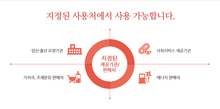 이 카드를 통해 임신·출산, 육아, 보육, 에너지, 위생용품 등 다양한 공공서비스의 지원을 편리하게 받을 수 있습니다.