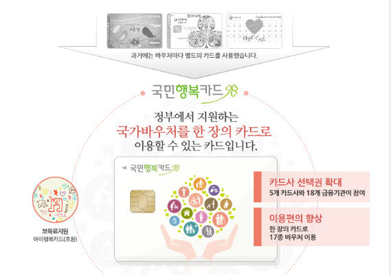 국민행복카드는 정부에서 제공하는 여러 국가 바우처 서비스를 한 장의 카드로