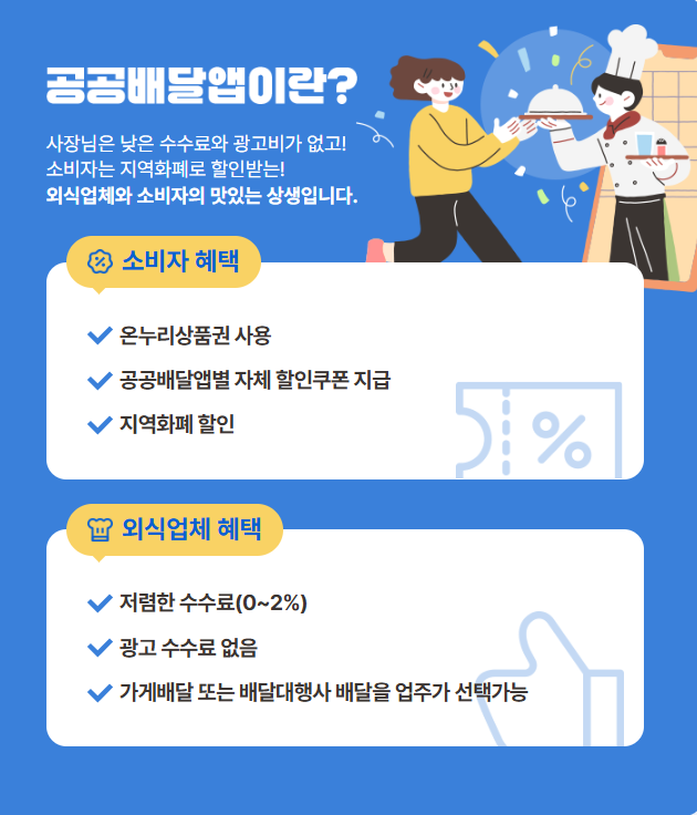 공공배달앱은 지방자치단체와 정부가 힘을 모아 만든 배달 서비스입니다.